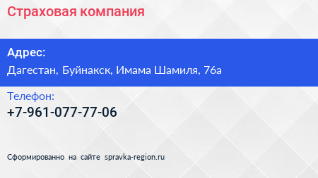 Страховая компания по адресу Дагестан, Буйнакск, Имама Шамиля, 76а в дальнейшем Организация, размещена в следующих категориях: