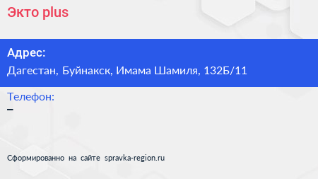 Экто plus по адресу Дагестан, Буйнакск, Имама Шамиля, 132Б/11 в дальнейшем Организация, размещена в следующих категориях: