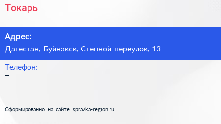 Токарь по адресу Дагестан, Буйнакск, Степной переулок, 13 в дальнейшем Организация, размещена в следующих категориях: