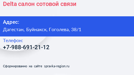Delta, салон сотовой связи по адресу Дагестан, Буйнакск, Гоголева, 38/1 в дальнейшем Организация, размещена в следующих категориях: