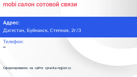 mobi, салон сотовой связи по адресу Дагестан, Буйнакск, Степная, 2г/3 в дальнейшем Организация, размещена в следующих категориях: