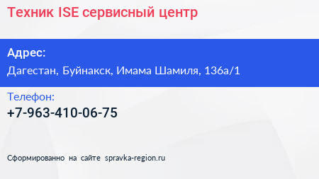 Техник ISE, сервисный центр по адресу Дагестан, Буйнакск, Имама Шамиля, 136а/1 в дальнейшем Организация, размещена в следующих категориях: