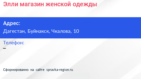 Элли, магазин женской одежды по адресу Дагестан, Буйнакск, Чкалова, 10 в дальнейшем Организация, размещена в следующих категориях: