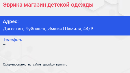 Эврика, магазин детской одежды по адресу Дагестан, Буйнакск, Имама Шамиля, 44/9 в дальнейшем Организация, размещена в следующих категориях: