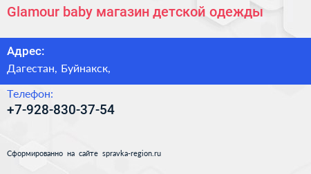 Glamour baby, магазин детской одежды по адресу Дагестан, Буйнакск, в дальнейшем Организация, размещена в следующих категориях: