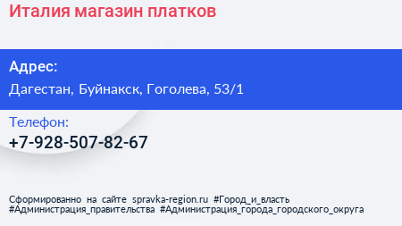 Италия, магазин платков по адресу Дагестан, Буйнакск, Гоголева, 53/1 в дальнейшем Организация, размещена в следующих категориях: