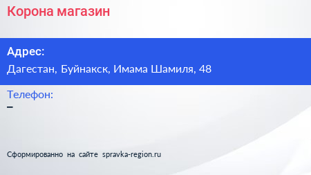 Корона, магазин по адресу Дагестан, Буйнакск, Имама Шамиля, 48 в дальнейшем Организация, размещена в следующих категориях: