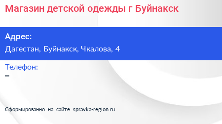 Магазин детской одежды, г. Буйнакск по адресу Дагестан, Буйнакск, Чкалова, 4 в дальнейшем Организация, размещена в следующих категориях: