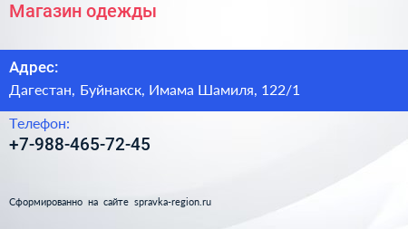 Магазин одежды по адресу Дагестан, Буйнакск, Имама Шамиля, 122/1 в дальнейшем Организация, размещена в следующих категориях: