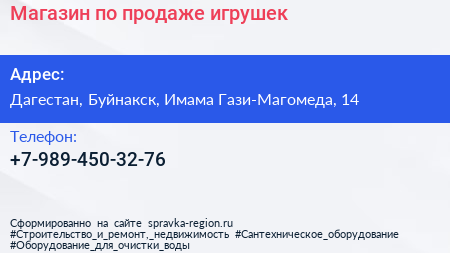 Магазин по продаже игрушек по адресу Дагестан, Буйнакск, Имама Гази-Магомеда, 14 в дальнейшем Организация, размещена в следующих категориях: