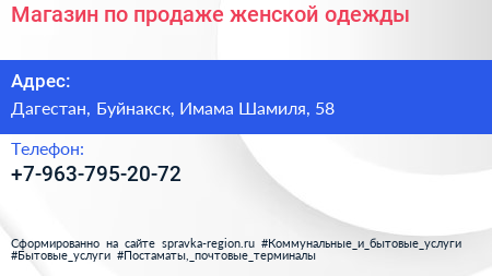 Магазин по продаже женской одежды по адресу Дагестан, Буйнакск, Имама Шамиля, 58 в дальнейшем Организация, размещена в следующих категориях: