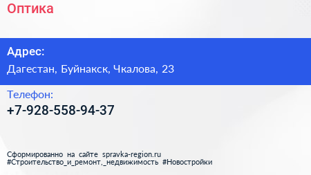 Оптика по адресу Дагестан, Буйнакск, Чкалова, 23 в дальнейшем Организация, размещена в следующих категориях: