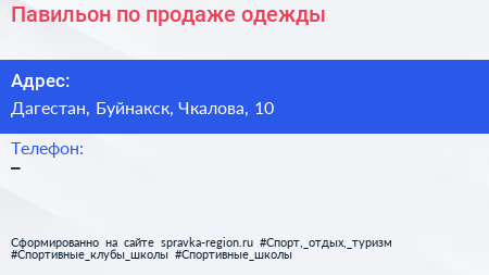 Павильон по продаже одежды по адресу Дагестан, Буйнакск, Чкалова, 10 в дальнейшем Организация, размещена в следующих категориях: