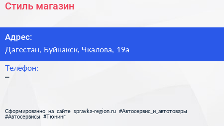 Стиль, магазин по адресу Дагестан, Буйнакск, Чкалова, 19а в дальнейшем Организация, размещена в следующих категориях: