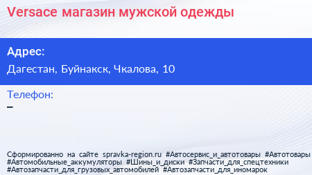Versace, магазин мужской одежды по адресу Дагестан, Буйнакск, Чкалова, 10 в дальнейшем Организация, размещена в следующих категориях: