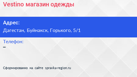 Vestino, магазин одежды по адресу Дагестан, Буйнакск, Горького, 5/1 в дальнейшем Организация, размещена в следующих категориях: