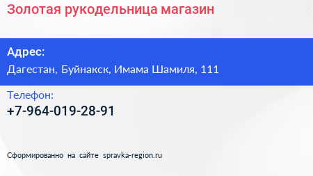 Золотая рукодельница, магазин по адресу Дагестан, Буйнакск, Имама Шамиля, 111 в дальнейшем Организация, размещена в следующих категориях: