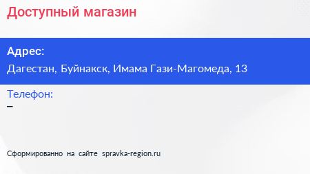 Доступный, магазин по адресу Дагестан, Буйнакск, Имама Гази-Магомеда, 13 в дальнейшем Организация, размещена в следующих категориях: