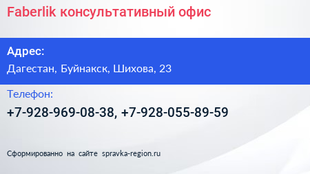 Faberlik, консультативный офис по адресу Дагестан, Буйнакск, Шихова, 23 в дальнейшем Организация, размещена в следующих категориях: