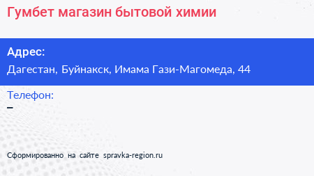 Гумбет, магазин бытовой химии по адресу Дагестан, Буйнакск, Имама Гази-Магомеда, 44 в дальнейшем Организация, размещена в следующих категориях: