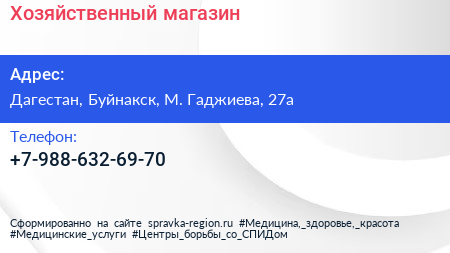 Хозяйственный магазин по адресу Дагестан, Буйнакск, М. Гаджиева, 27а в дальнейшем Организация, размещена в следующих категориях: