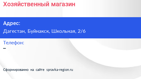 Хозяйственный магазин по адресу Дагестан, Буйнакск, Школьная, 2/6 в дальнейшем Организация, размещена в следующих категориях: