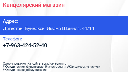 Канцелярский магазин по адресу Дагестан, Буйнакск, Имама Шамиля, 44/14 в дальнейшем Организация, размещена в следующих категориях: