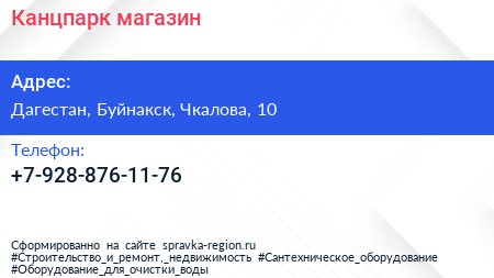 Канцпарк, магазин по адресу Дагестан, Буйнакск, Чкалова, 10 в дальнейшем Организация, размещена в следующих категориях: