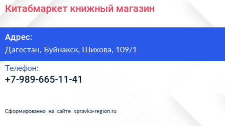 Китабмаркет, книжный магазин по адресу Дагестан, Буйнакск, Шихова, 109/1 в дальнейшем Организация, размещена в следующих категориях: