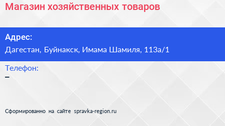 Магазин хозяйственных товаров по адресу Дагестан, Буйнакск, Имама Шамиля, 113а/1 в дальнейшем Организация, размещена в следующих категориях: