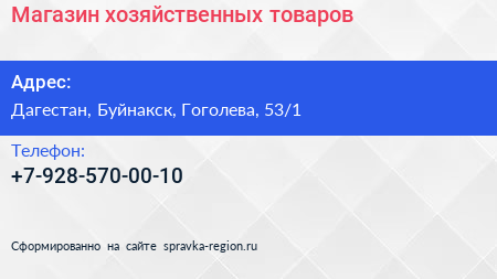 Магазин хозяйственных товаров по адресу Дагестан, Буйнакск, Гоголева, 53/1 в дальнейшем Организация, размещена в следующих категориях: