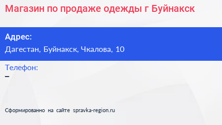 Магазин по продаже одежды, г. Буйнакск по адресу Дагестан, Буйнакск, Чкалова, 10 в дальнейшем Организация, размещена в следующих категориях:
