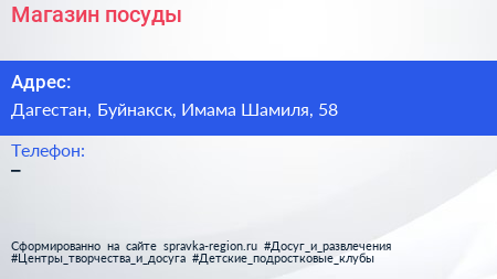 Магазин посуды по адресу Дагестан, Буйнакск, Имама Шамиля, 58 в дальнейшем Организация, размещена в следующих категориях: