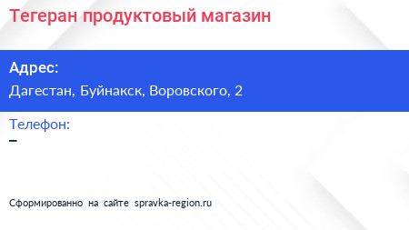 Тегеран, продуктовый магазин по адресу Дагестан, Буйнакск, Воровского, 2 в дальнейшем Организация, размещена в следующих категориях: