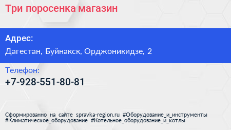 Три поросенка, магазин по адресу Дагестан, Буйнакск, Орджоникидзе, 2 в дальнейшем Организация, размещена в следующих категориях: