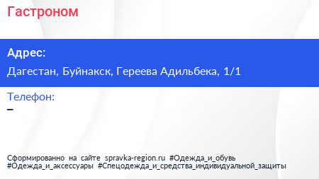 Гастроном по адресу Дагестан, Буйнакск, Гереева Адильбека, 1/1 в дальнейшем Организация, размещена в следующих категориях: