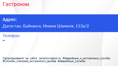 Гастроном по адресу Дагестан, Буйнакск, Имама Шамиля, 113а/2 в дальнейшем Организация, размещена в следующих категориях: