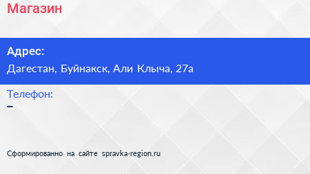Магазин по адресу Дагестан, Буйнакск, Али Клыча, 27а в дальнейшем Организация, размещена в следующих категориях: