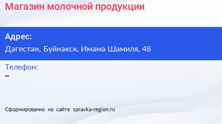 Магазин молочной продукции по адресу Дагестан, Буйнакск, Имама Шамиля, 48 в дальнейшем Организация, размещена в следующих категориях: