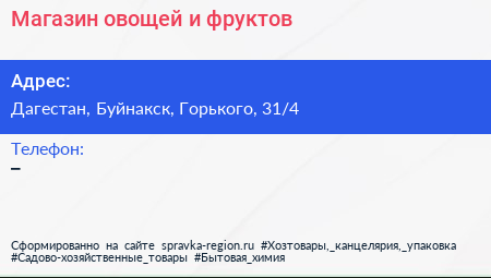 Магазин овощей и фруктов по адресу Дагестан, Буйнакск, Горького, 31/4 в дальнейшем Организация, размещена в следующих категориях: