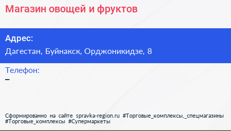 Магазин овощей и фруктов по адресу Дагестан, Буйнакск, Орджоникидзе, 8 в дальнейшем Организация, размещена в следующих категориях: