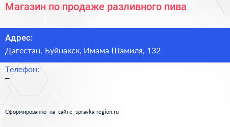 Магазин по продаже разливного пива по адресу Дагестан, Буйнакск, Имама Шамиля, 132 в дальнейшем Организация, размещена в следующих категориях: