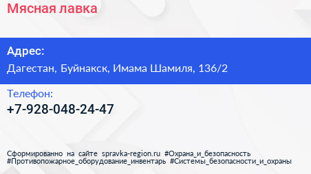 Мясная лавка по адресу Дагестан, Буйнакск, Имама Шамиля, 136/2 в дальнейшем Организация, размещена в следующих категориях: