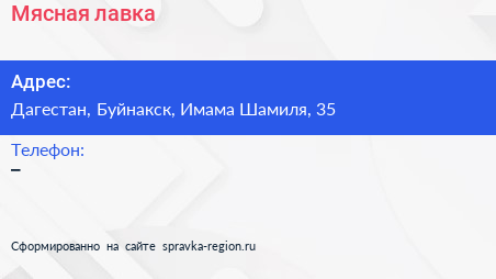 Мясная лавка по адресу Дагестан, Буйнакск, Имама Шамиля, 35 в дальнейшем Организация, размещена в следующих категориях: