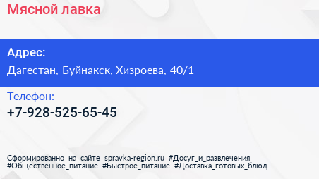 Мясной лавка по адресу Дагестан, Буйнакск, Хизроева, 40/1 в дальнейшем Организация, размещена в следующих категориях: