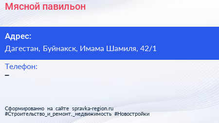 Мясной павильон по адресу Дагестан, Буйнакск, Имама Шамиля, 42/1 в дальнейшем Организация, размещена в следующих категориях:
