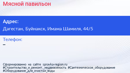 Мясной павильон по адресу Дагестан, Буйнакск, Имама Шамиля, 44/5 в дальнейшем Организация, размещена в следующих категориях: