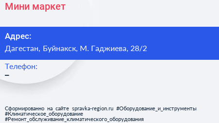 Мини-маркет по адресу Дагестан, Буйнакск, М. Гаджиева, 28/2 в дальнейшем Организация, размещена в следующих категориях: