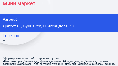 Мини-маркет по адресу Дагестан, Буйнакск, Шихсаидова, 17 в дальнейшем Организация, размещена в следующих категориях: