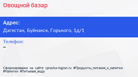 Овощной базар по адресу Дагестан, Буйнакск, Горького, 1д/1 в дальнейшем Организация, размещена в следующих категориях: